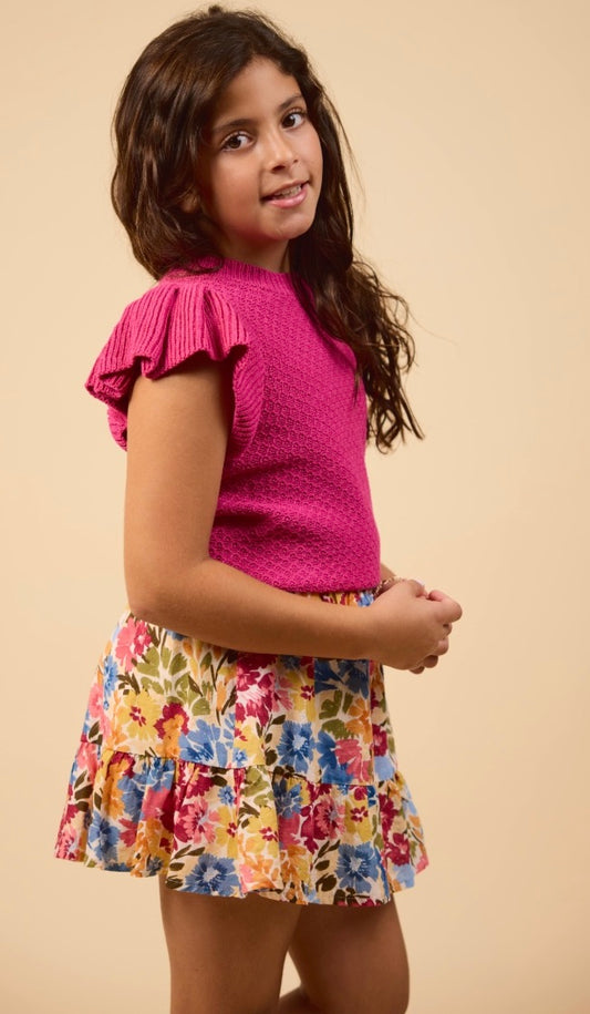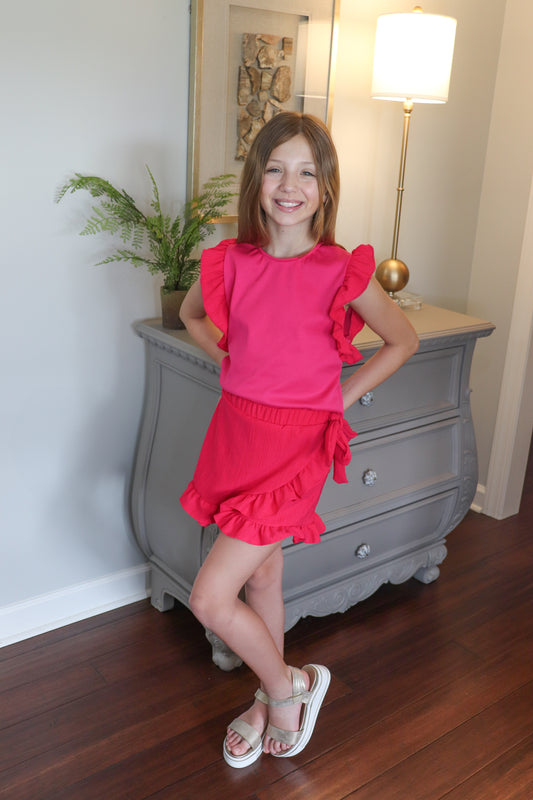 Ruffle Sleeve & Ribbon Tied Skort Set