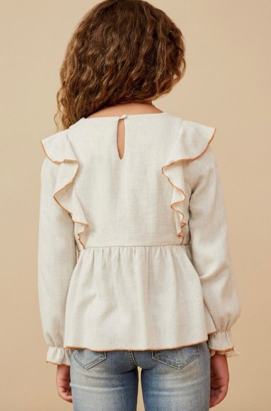 Girls Ruffled Shoulder Ribbed Active Crop Top